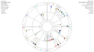 Saturn in Sagittarius in the 5th doesn’t sound like there’s much fun to be had. Controls in individual self-expression such as freedom of speech on social media etc. are likely, maybe legislative controls, but also self censorship from fear of offending those who are ‘different’ from ourselves and of being publically shamed (usually online) for doing so. Will those fears put a dampener of old fashioned romance? While many young people might dream of a handsome stranger approaching them to tell them they fancy them, there’s a fine line these days between that and harassment! Cuts to arts and culture funding are likely and issues around children and birth-rates are also likely to be a focus, as well as regulatory issues around betting and gaming regulations.Addition: Since writing this for Infinity Magazine back in February, on 22nd March, two days following the Aries ingress, Brussels suffered a horrific terrorist attack on its public transport network. The Aries ingress chart set for Brussels (see the outer wheel of the bi-wheel above) sees the two traditional malefics, Mars and Saturn, either side of the MC. Saturn is moving slowly and stations Retrograde on March 25th at 16 Sagittarius. Mars too will go retrograde in Sagittarius in mid April. Mars will not overtake Saturn in Sagittarius until late August, so these two planets will be running mates for some time to come (even though Mars will be back in Scorpio from late May to early August).